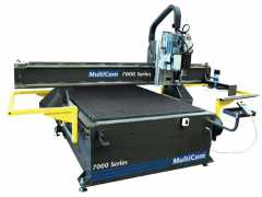 Multicam 7000系列龍門式CNC加工中心是工業生產型號機型,全鋼架結構。空行速度為45米/分鐘,最高切割速度為45米/分鐘。高速的三軸連動適合大批量木、鋁、銅,復合材料工件的切割加工。主軸采用意大利知名品牌的高頻電主軸,其具有結構緊湊、機械效率高、噪音低、振動小等特點,是提高機床切割性能利器。美國MultiCam原廠數控系統,性價比最優。