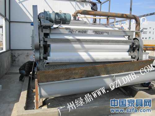 輥轆 及兩網帶的拉緊張力的擠壓,最后再經兩道裝有導彈簧的可隨厚渣薄自動升降的壓轆壓榨后,渣經刮板刮落排了。完成一個周期后返回的網帶經水噴射洗滌,去除網眼殘積物后,重新進入下一周期的工作。全過程均為連續化生產,效率高,特別是出渣含水分穩定,受其它因素變化的影響較少,因此,較成功的克服了前述介紹的脫水設備存在的缺點及不足。