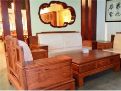 《博古沙發》以傳統的博古紋圖案作為雕飾題材,寓意清雅高潔。優雅的紅木家具配上極富意蘊的博古雕飾,將紅木家具的雅致表現得淋漓盡致。另外,此沙發在整體的造型設計上結合了現代的風格,沙發椅采用軟體的風格,使人倍感舒適。