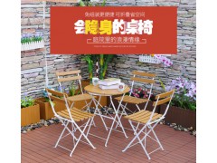 戶外折疊桌椅陽(yáng)臺(tái)三五件套裝花園塑木露臺(tái)便攜室外奶茶幾庭院桌椅