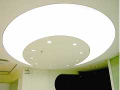 2、寫字樓、大型會議室、大型賣場、汽車4S店、機場、行政辦公樓、商業寫字樓及各種展覽中心等場地面積較大,使用軟膜天花,更顯氣派非凡,配上富麗堂煌的燈光效果,能夠突出整體效果。