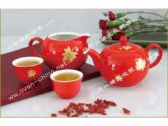乾唐軒小圓融楓葉茶具,以具有中國道家文化圓融為理念,配以楓葉花紋進行設計。CTS乾唐軒小圓融楓葉茶具,以高品質的活瓷為材料,1300度高溫進行燒制,具有健康養生功效。CTS乾唐軒小圓融楓葉茶具,紅是中國特有文化,在中國,紅色是喜慶、吉祥、熱情的象征。