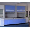 (7)箱體:主體結構采用固定式金屬柜體直接支撐臺面。柜體采用1mm厚優質冷軋鋼板,柜體內設一層活動擱板,擱板采用1.0mm厚優質冷軋鋼板,經去脂磷化后靜電粉沫噴涂,單面漆厚度不小于0.1mm。實驗柜底板為整片式設計,柜體后背板可拆。柜體帶排風。