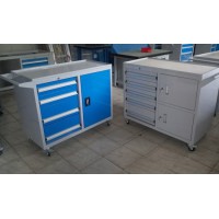 工具車是可移動的工具柜,適合在生產(chǎn)現(xiàn)場安全、高效的運送工具和零部件。標(biāo)準(zhǔn)型工具車市由各種型號的工具柜增加頂框和底部腳燈移動部件而組成。抽屜的選型和配置與所選用的工具柜完全一致。