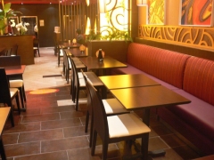 此款西餐廳桌椅成為各大西餐廳的必備之品.大方,經典,而且非常實用. 西餐廳桌椅可以根據西餐廳裝修環境做成不同的色調,同時也給西餐廳增添了炫麗,優雅之感。所有西餐廳桌椅尺寸顏色均可根據客戶的要求來訂做。