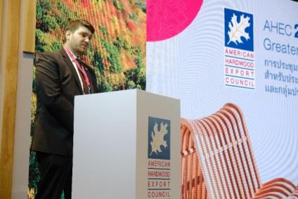 來自 AHEC弗吉尼亞州總部的Tripp Pryor先生向與會嘉賓們展示了美國如何保持著世界最大的闊葉木木材出口國地位,其占全球市場價值近三分之一。他表示,東南亞地區對木材種類的需求正在擴大,而美國闊葉木對泰國出口呈年增長49%的驚人態勢。他在講話中也談到現有全球認證體系的一些局限性,并特別介紹了目前AHEC正在開發的改進認證系統的一些初步階段。該系統是“可持續闊葉木聯盟”(Sustainable Hardwood Coalition)的一部分,與倫敦皇家植物園的世界森林ID(World Forest ID)聯盟等合作伙伴共同開發,用以建立最大的地理參考開源森林樣本合集,以應對欺詐、非法采伐和砍伐。