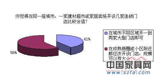 那么對于目前由于賣場“瘋狂”擴張所引發(fā)的廠商爭議,消費者又是如何看待的?從調(diào)查結(jié)果來看,大多數(shù)網(wǎng)友對于賣場的擴張還是保持了肯定的態(tài)度,有59%的網(wǎng)友表示在成熟商圈或小區(qū)附近都應(yīng)該開設(shè)門店,但規(guī)模可以有大小。另有41%的網(wǎng)友表示,在城市不同區(qū)域開一到兩家大型門店即可。這點,反映了消費者對于大店,同城不宜多,但對于小店,便利多開的觀點。此前我們在征詢企業(yè)意見時,圣象集團市場部總經(jīng)理王曉宇也曾表示:賣場在大城市可以開,但要換個模式。比如一個北京可以容納多少個大型蘇寧,我想一個夠了。現(xiàn)在更多是變成了社區(qū)蘇寧。超市來講,世紀(jì)聯(lián)華,它開了很多大的以后,現(xiàn)在它在開小的。所以像紅星美凱龍,居然之間,可能你有大紅星美凱龍,大居然之家,可能以后你要有小居然之家,小紅星美凱龍,甚至三級城市仍然需要這種業(yè)態(tài),像電器,國美遠不是原來恒基大廈里面那么大的一個,這種的它也需要,但反而一個小蘇寧、小國美,現(xiàn)在在北京有很多這樣的業(yè)態(tài)。