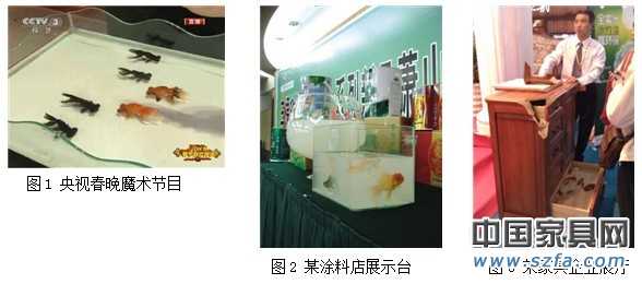 今年深圳家具展上有個京派企業,是一個純粹的美式風格家具品牌。在他們的展廳門口,擺著一個柜子(見圖3)。凡是路過這里的人都會被這個柜子吸引,除了已經被用爛了的鋸角之外,它在柜子里能養金魚是它最抓眼球的部分。