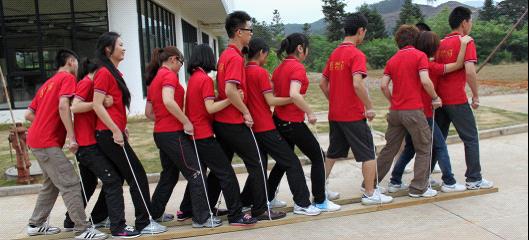 雖說“天公不作美”原本下午的“信任背摔”拓展游戲有所變動,但這個核心圓卻是“沒什么是不可能的”的心態象征。