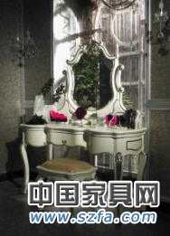 梳妝臺是臥室中的點晴之筆,圓形的梳妝凳,造型流暢美觀,猶如裙擺,讓人產生豐富的想象。從色彩搭配上來說,妝臺白色的主色與描銀的雕刻,輔以陳列的彩色沙發和貴妃椅飾品無疑是這個空間的視覺點綴,融合了這個空間里物件的所有的顏色,演繹著醉人心扉的浪漫奢華。廖廖幾件單品就構成了角落的美景,既美化了角落,又增加了空間層次感,讓整個空間協調統一。
