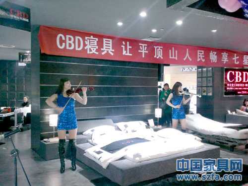 慶典當(dāng)天,CBD寢具店也是裝飾一新,活動氛圍熱烈。還特別請到當(dāng)?shù)刂哪L貋碓忈孋BD時(shí)尚潮流的軟床,伴著優(yōu)雅的小提琴表演,帶給人們視覺與聽覺的雙重享受,很多消費(fèi)者都是慕名而來,更使得CBD寢具成為整個(gè)商場的焦點(diǎn)。