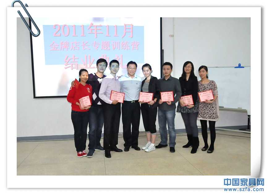 11月17日晚上進行的是店長班的結業典禮環節,深圳市家具行業協會侯克鵬秘書長參加了本次結業典禮,并且為優秀團隊頒獎以及為學員頒發了結業證書。