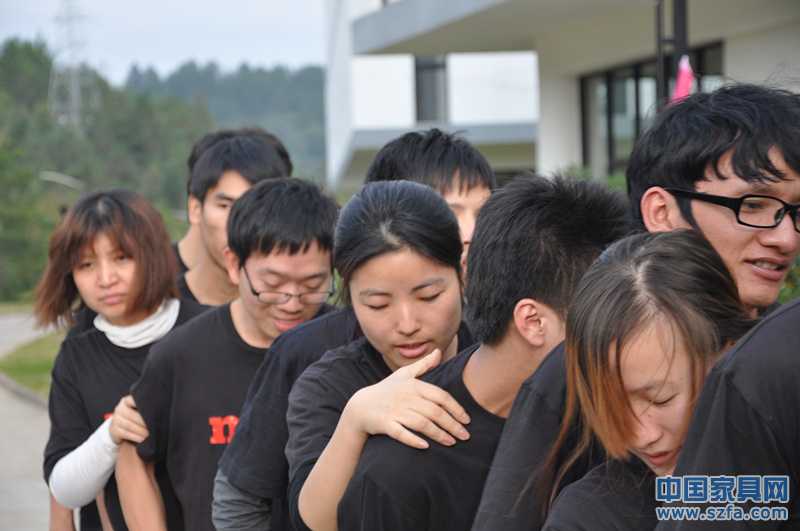 游戲規(guī)則:“從寸步難行,到小跑前進(jìn)”,隊(duì)友手拉繩索,腳踩木板,一起走兩端40M左右的路。第一段路可以喊著口號通過,第二段路不準(zhǔn)發(fā)出口號聲,否則要回到原點(diǎn)重新開始。