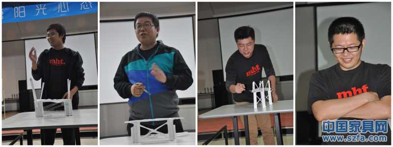 游戲規則:團隊成員利用一定資源的A4紙和工具,扎造出一座美國舊金山的金門大橋,橋面寬度為易拉罐可樂高度,橋面高度為啤酒易拉罐高度,最后以承重易拉罐裝可樂的數量最多的團隊為優勝團隊。