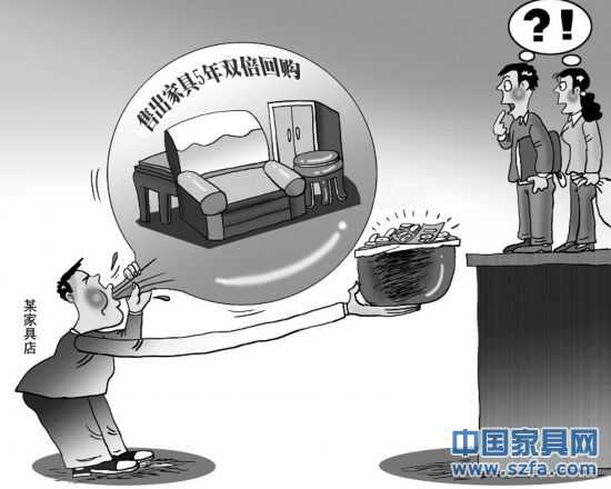 日前,天津市某門戶網站上,一位網友發帖子稱:“對于每個家庭來說,家具算是大宗必需品,然而,在年初‘達芬奇’事件發生以后,家具行業面臨著信任危機。天津市河西區紅星美凱龍商場‘原木尚品家具’最近作出承諾,稱售出的榆木家具5年后雙倍價回購……家具用5年,還能以雙倍價賣出,真有這樣的好事?”很多消費者回帖質疑,這里面有沒有欺詐?是否存在消費陷阱?記者就此進行了調查。