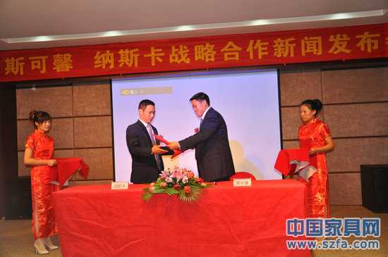 2012年1月11日,作為江蘇家具行業最具規模和創新力家具企業江蘇斯可馨家具股份有限公司正式牽手蘇州第二大沙發品牌納斯卡,實現優勢互補、強強聯合,共同打造中國軟體家具布藝沙發第一品牌。