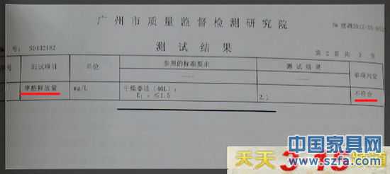 (廣州質(zhì)檢院的檢測報告顯示“甲醛超標” 供圖:邱小姐)