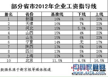 10省市2012年企業工資指導線一覽