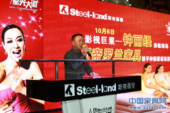 普天同慶的節日長假還未結束,斯帝羅蘭“時尚誘惑 心動出擊”國慶全國促銷活動正酣,在這樣一個浪漫的假日,斯帝羅蘭在歷史名城開啟“明星名品鑄名牌”明星簽售活動更具有特別的意義,下午16時,國際著名影星、性感女神鐘麗緹在近千影迷的吶喊聲中出現在石家莊方北紅星美凱龍,隨著暖場主持人現場互動,拉開了星光大道啟動儀式的序幕,廣東金富士集團副總裁胡憶湘、石家莊家具協會會長張百倫會長、石家莊方北紅星美凱龍總經理陸敬偉先生、斯帝羅蘭家具石家莊分公司總經理劉永輝先生等嘉賓與鐘麗緹小姐一起拉動啟動桿,活動現場掌聲雷動,金富士集團(斯帝羅蘭母公司)副總裁胡憶湘代 表斯帝羅蘭家具品牌就舉辦此次“明星名品鑄名牌”明星簽售活動及斯帝羅蘭的未來發展發表了演講,斯帝羅蘭石家莊分公司總經理劉永輝現場向鐘麗緹小姐贈送了具有石家莊地方特色的禮品,隨著現場音樂的響起,被視為影壇巨星的鐘麗緹小姐現場邀請集團副總裁胡憶湘現場跳恰恰舞,能歌善舞的胡副總裁極力配合,兩人的完美演繹伴著悠揚的旋律一下把活動推向了高潮。