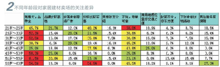 不同年齡段對家居建材賣場的關(guān)注差異