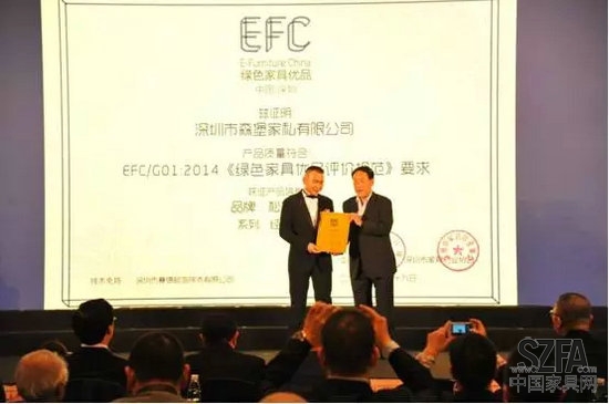 松堡王國品質中心姚總(前中)接受“深圳家具”牌匾