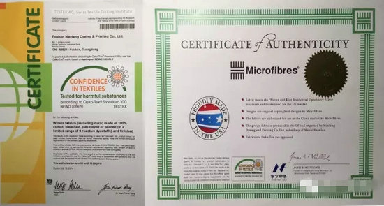 Mr.Ethan Degroot給大家講解了為得一沙發提供的美國進口多功能面料具有的以下“七防”功能,分別是防污、防塵、防靜電、防螨抗菌、防霉、防油漬、阻燃,最終達到高度環保的效果,并且帶來了美國認證的“產品質量認證書”,每位訂購得一M系列沙發的客戶都將得到Microfibres公司提供的證書。