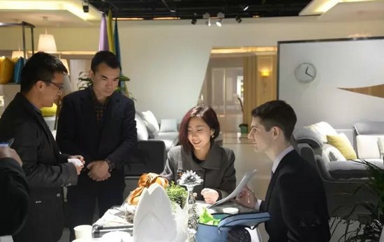 講解活動結束后,得一家私營銷總監黃非先生和得一沙發事業部劉總與Mr.Ethan Degroot做了深入的技術與合作交流,對雙方的深度合作做了意見交換,為得一沙發在面料品質上做出了強有力的保障。