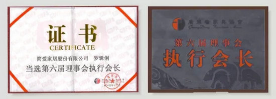 簡愛家居創始人/董事長 羅輯俐女士因其個人對推動廣東省家具/建材專業連鎖賣場的進步所作出的貢獻,及其在行業內的影響力和號召力,連任家協第六屆理事會執行會長并獲得“功勛人物獎”;簡愛家居股份有限公司為省家協第六屆執行會長單位為“資深會員”單位。