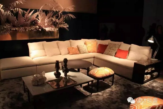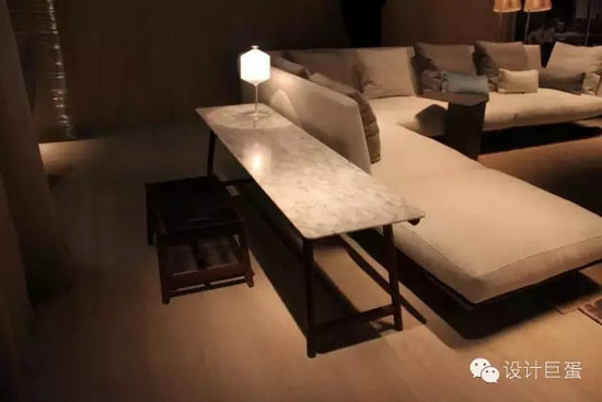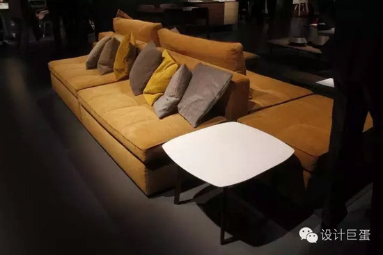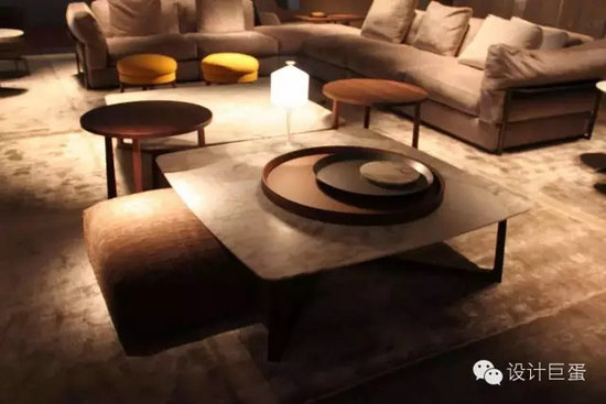 如果說軟體家具以沙發、軟床為主角,那么米蘭展的軟體配套產品就是不甘寂寞的配角。這些不被國內企業重視、甚至隨意搭配整合的配套產品,在米蘭展上獲得了新的地位。有的茶幾、背幾運用金屬、石材、實木等不同的材料、飾面,造型多變,高低錯落有致,極具個性。在帶來便捷功能的同時,為空間營造出不同的層次感。