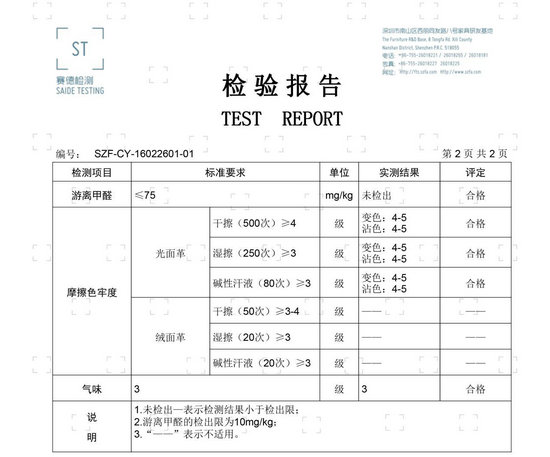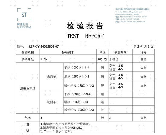 2016年2月,左右家私迎來第二輪關鍵原材料的抽檢工作,本次賽德檢測共抽樣5款皮革面料、2款紡織品面料、1款膠合板,針對理化性能及環(huán)保性能進行全面檢測,抽檢結果合格率達到100%。