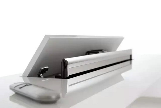 對開間的小戶型居室,很難保持其各個空間的整潔有序和風(fēng)格統(tǒng)一。將電視隱藏起來是個好主意,Minilift電動升降五金可以使電視從柜內(nèi)豎直升起,柜的空間也得到了更多利用。