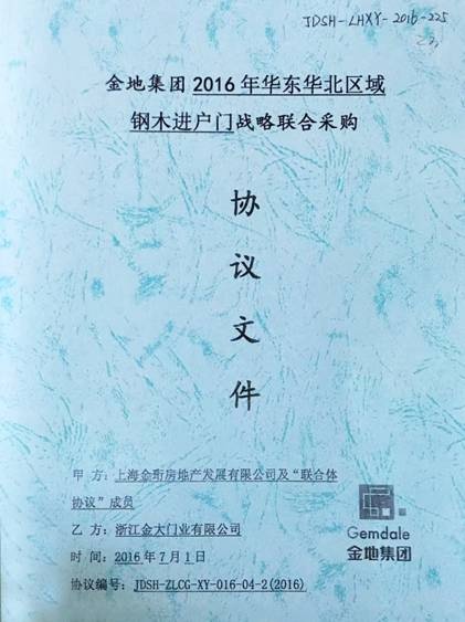 近日,金地集團(tuán)2016-2018年度華東華北區(qū)域鋼木進(jìn)戶門(mén)戰(zhàn)略聯(lián)合招標(biāo)大會(huì)落下帷幕,經(jīng)過(guò)對(duì)眾多2016年度合作供應(yīng)商的嚴(yán)格評(píng)選,最終浙江金大門(mén)業(yè)脫穎而出,成為本次戰(zhàn)略聯(lián)合采購(gòu)的中標(biāo)單位。