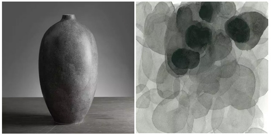 珍珠魚皮紋花瓶表面的紋理,宛如珍珠一般星星點(diǎn)點(diǎn),純凈皎潔,在灰色釉面掩映下,內(nèi)斂含蓄,給人平和之感。