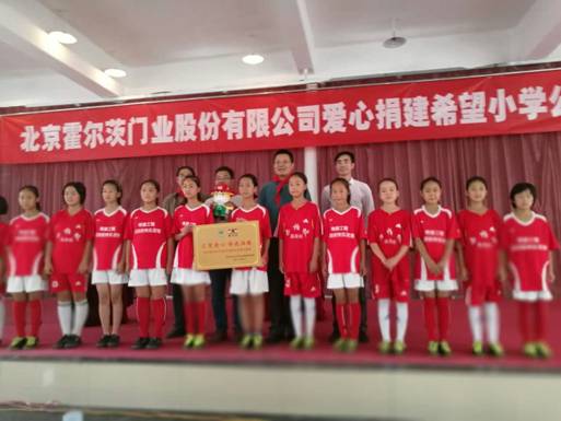 2016年9月24日,在河北省石家莊市平山縣溫塘希望學校,一場別開生面的活動在這里舉行——由國內木門行業領導品牌霍爾茨木門舉辦的愛+生態——霍爾茨木門愛心公益行正式啟動,來自霍爾茨木門的領導、校方領導以及媒體行業的眾多嘉賓出席了活動。活動現場,霍爾茨木門作為企業代表為學校破舊的校門捐助了精心制作的霍爾茨生態木門,為孩子們提供更好、更健康的學習環境,自活動發起便得到了業內及社會人士的廣泛贊譽。