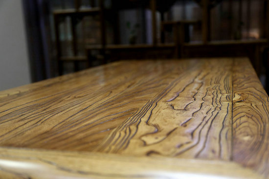 榆木落梁,從落居到廢棄,這些老榆木待在老房子中經(jīng)歷了幾十年甚至上百年歲月的洗禮,在它行云流水般的紋理中,飽含著百年的時(shí)光記憶,每一個(gè)凹凸的年輪都承載黃河兒女的歷史軌跡。在面對(duì)這份獨(dú)有的歲月感,我們可以凝想:老祖宗們是如何圍繞著它們生活的,而今段王府又如何將把看似平凡的老榆木盡力做成“不平凡”的家具。