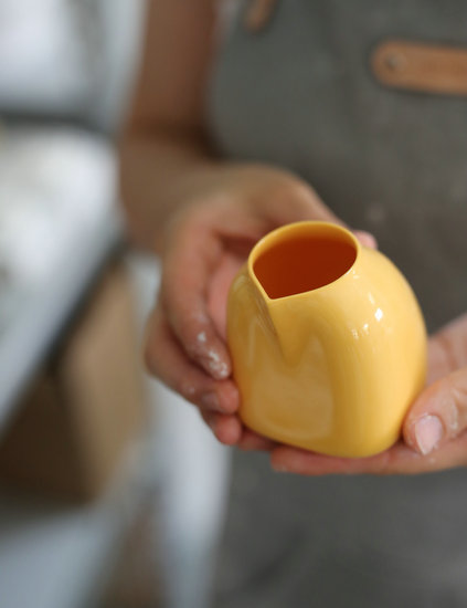 Mummo ,芬蘭語中奶奶的意思。Mummo小奶壺,是旻佳經(jīng)過反復(fù)的比例推敲和細節(jié)琢磨,根據(jù)手里握著奶壺最舒服的形態(tài)而制作的。她好像是奶奶的化身,在忙碌的深夜,在初醒的清晨,靜靜地為你遞上一杯熱牛奶,讓你感受到親人最近的牽掛和愛。