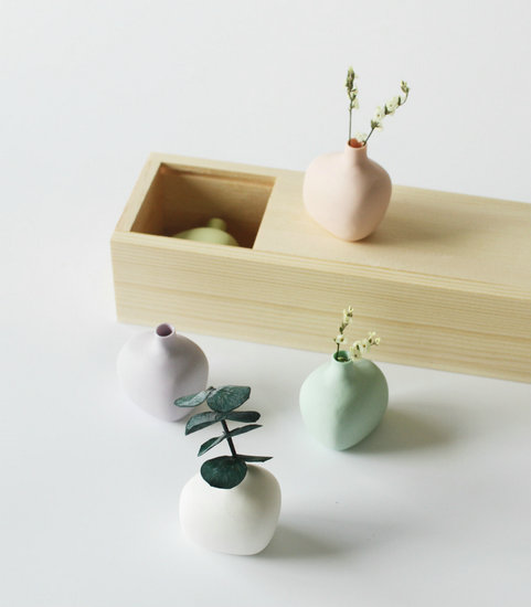 “babyvase”小花瓶,小巧可愛。在色彩和質(zhì)感上都非常細膩溫柔,如同嬰兒肌膚般光滑。在花瓶中插上小花小草,擺在案頭,萌發(fā)出小小的生機