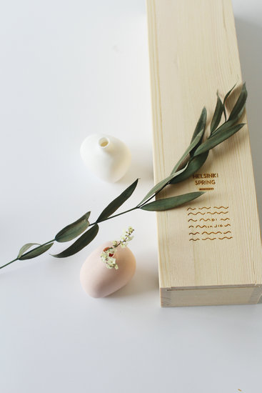 關(guān)于赫爾辛基的春天一切美好的回憶,旻佳經(jīng)過三個多月的時間,用礦物質(zhì)色彩進行調(diào)色,把它放到了泥土里,制作了“babyvase”小花瓶。