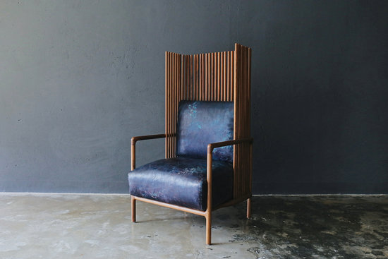 高背染皮單人沙發(fā)把過去撿煉起來,在設(shè)計(jì)中重新獲得連接。選用黑桃木和皮革為材質(zhì),手工將皮革與棉胎縫制起來。木頭穩(wěn)實(shí)的觀感,配以皮革特有的歲月感,它如同一位長者,經(jīng)光陰和歲月的沖洗,在空間中散發(fā)出深邃與沉穩(wěn)的氣質(zhì)。