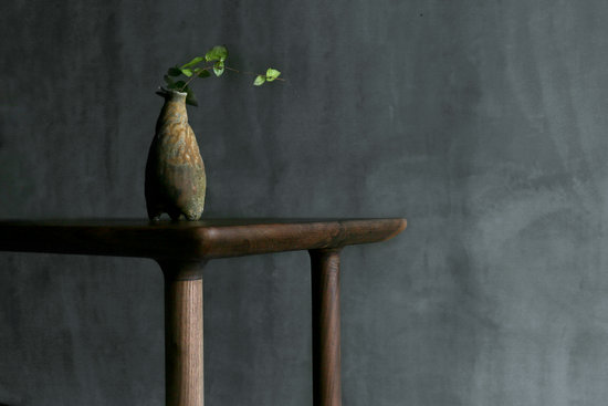 初看茶臺,讓人不禁回憶舊時故里,放置在高堂的高桌,素雅與靜怡。茶臺由純黑桃木制做,利用榫卯結(jié)構(gòu),搭建上下兩層,加大了放置物品的空間與增加了便利性。從舊日的高桌中提煉質(zhì)樸,從當(dāng)代居家需求中加以改良。