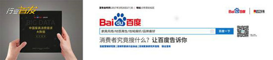3月20日下午,2017深圳時尚家居設計周暨第32屆深圳國際家具展上,由深圳市家具行業協會與百度聯合主辦的“中國家具消費需求大數據發布會”如期舉行,萬眾期待的行業首發在深圳家具研究開發院院長許柏鳴、深圳市家具行業協會副秘書長劉瑞貞、百度(中國)有限公司深圳分公司總經理張作誠、百度整合營銷策劃部總監馮文振等嘉賓與現場觀眾的見證下正式發布。