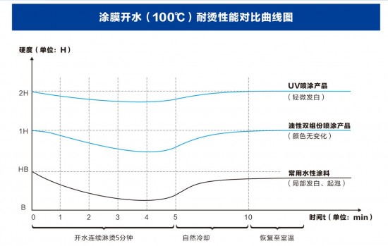 涂膜開水(100℃)耐燙性能對比曲線圖