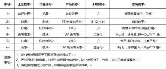 美中美專業的技術應用服務團隊結合石材涂裝工藝特點及性能需求,推出油性雙組份手動噴涂和UV自動噴涂兩大施工方案,從根本上解決不同石材涂裝工藝難點,確保涂裝效果達成。
