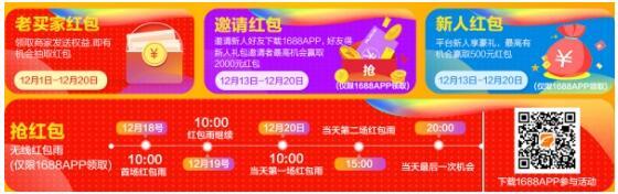 此次的“商人節(jié)”齊聚七大分會場,場場都每個類目精心打造的商業(yè)活動,而在“商人節(jié)”預(yù)熱期間,每天都有重磅活動。此外,在12月18日—12月20日會有連續(xù)三天的紅包雨,12月20日則是好貨開搶,還有整點紅包和更多讓利。