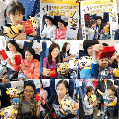 當(dāng)天,偉昌吉祥物小老虎空降武漢站,與乘客互動(dòng)送禮品并派發(fā)現(xiàn)金紅包,小人偶的出現(xiàn),馬上吸引車(chē)廂內(nèi)乘客的眼球,大人小孩紛紛圍觀。車(chē)上的乘客們紛紛拿著造型畫(huà)框合影留念,并大聲地喊出“偉昌鋁材虎虎生威”!無(wú)論是車(chē)組乘務(wù)員,還是旅客們,他們都在這趟“偉昌號(hào)”上收獲滿滿。