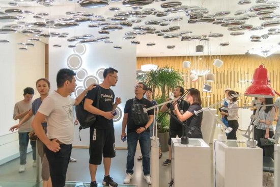 在參觀過程中,室內(nèi)設(shè)計(jì)師與品牌廠家就燈具產(chǎn)品造型設(shè)計(jì)、場景應(yīng)用和室內(nèi)空間燈光設(shè)計(jì)等方面展開交流探討。隨后,雙方還交換了聯(lián)系方式,期待后續(xù)展開更深入的合作。