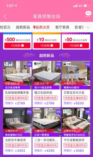 截止,今天15:28,芝華仕床墊在天貓雙11活動爆款床墊已經(jīng)突破10000件,書寫了雙11預(yù)售新紀(jì)錄,床墊行業(yè)新霸主就此延續(xù)。