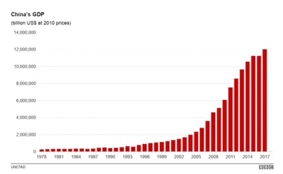 中國GDP過去40年飛速增長