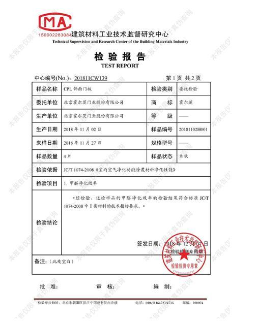 霍爾茨產品在CPL飾面材料添加凈醛活性因子,其表面可形成分子篩結構,這一分子晶格特征具有強大的離子交換能力,可持續生成“空穴電子對”,激活空氣中的水和氧形成活性氧,將室內游離甲醛分解為水和二氧化碳,同時,活性氧還可以穿透菌體細胞膜,有效消滅有害菌,安全無污染。根據建筑材料工業技術監督研究中心出具的檢驗報告顯示,采用該專利技術的霍爾茨產品24小時除醛率可達80.1%,24小時滅菌率則可達到99.9%,更不可思議的是,這種凈醛、除菌功能可持續15年之久。