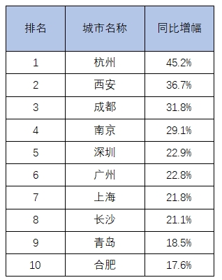 (2020年二手房成交量增長最快的十大城市。數(shù)據(jù)來源:貝殼研究院)
